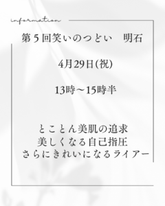 第5回「笑いのつどい」とことん美を追求する会を行います!___肌質体質改善エステ_ビューラー大谷